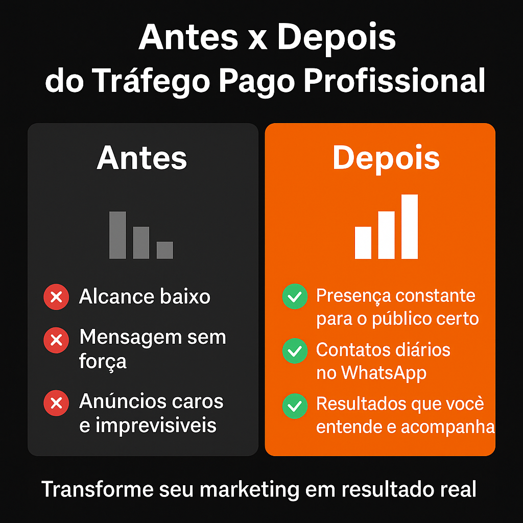 Com gestão profissional, previsibilidade entra no seu dia a dia: mais pessoas certas vendo você, mais conversas no WhatsApp, mais oportunidades reais.
